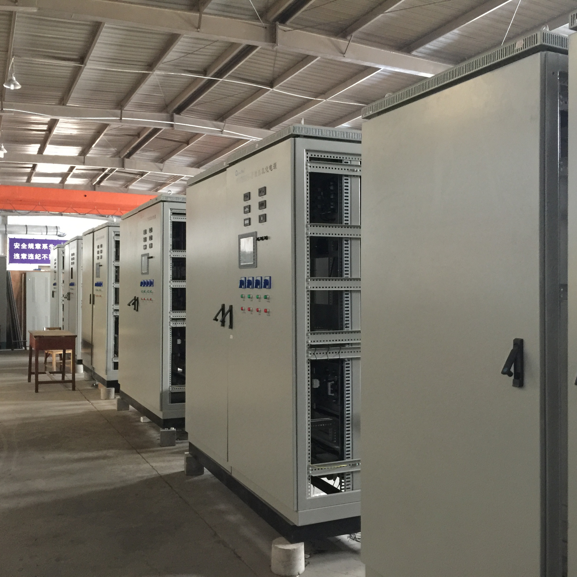 電源柜產品有3個系列:低壓550V電源柜、高壓750V電源柜、定制化單(雙)脈沖微弧氧化電源柜。針對客戶的要求及工廠實際情況,我們還可為客戶設計和定制全套的全自動低軌或高軌微弧氧化生產線,包括配套的槽體、軌道、變壓器、制冷方案等,并且提供現場安裝、調試及后期維護服務。